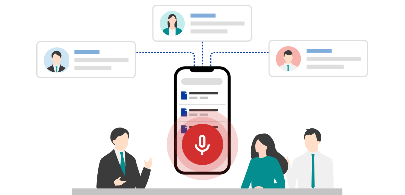 1タップで簡単録音・解析。独自の話者分類技術により「誰が話したか」まで正確に記録します。
